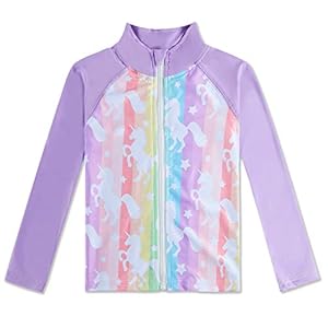 Kids Long Sleeve Rash Guard Swim Shirt Girls Rainbow Unicorn Rashgurad Swimsuit Purple Sun Shirt UPF 50+ for Snorkeling…$8.99Buy