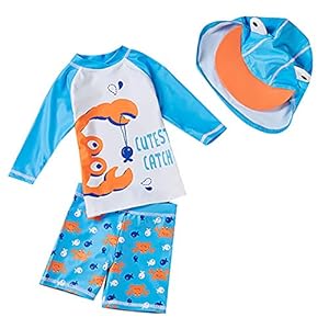 Kids Boys Rash Guard Set Long Sleeve Swimwear UPF50+ Yellow Dinosaur Swimsuits with Sun Hat 1-7Y$21.99Buy