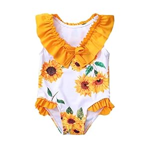 nilikastta Girls One Piece Swimwear 1-5Y Toddler Girls Swimsuit Cute Ruffled Bowknot Striped Bathing Suits Yellow$9.99Buy