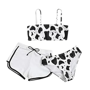 Tankini Swimsuits for Girls Cow Print Bikini 3 Piece Swimsuit Bandeau Top with Boyshorts Briefs Bathing Suit 8-14 Years$15.82Buy