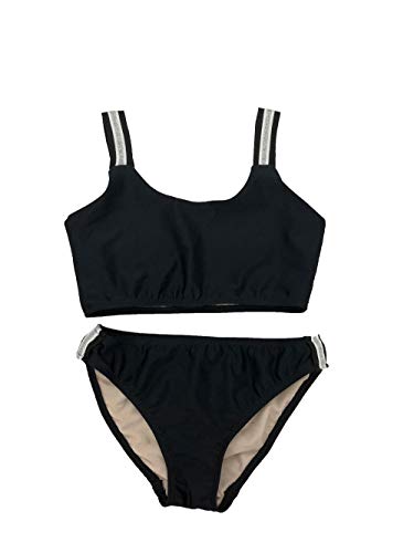 DETAILS- Girls Elastic Stripe 2 Piece Swimsuit Bikini. Made in USA. Swimsuit fits all girls sizes 7-16