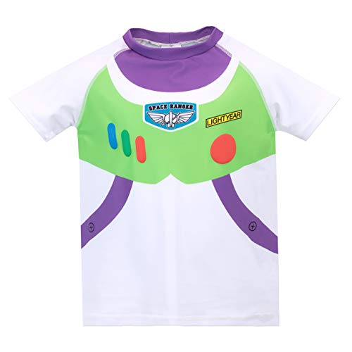 Boys Toy Story Swimset. Get your space ranger ready for poolside action with this adorable Buzz Lightyear swimming costume. This Disney two piece mimics Buzz iconic outfit from the Disney Toy Story movie, complete with matching green swim shorts which have a fun print of Buzz on the leg. Your little Toy Story fan will be ready to swim to infinity and beyond with best pal Sheriff Woody!