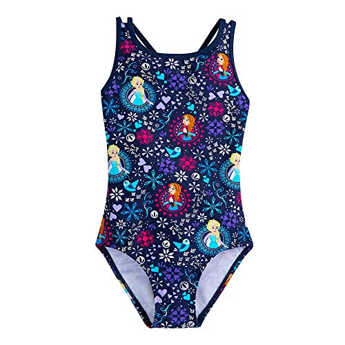 Two-piece set includes swimsuit and rash guard; Allover Elsa and Anna pattern on one-piece swimsuit