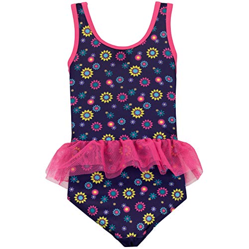 Girls Disney Frozen Swimsuit. Your little princess will be set to rule the pool in this adorable Frozen swimming costume! Featuring a large print of her favourite princesses: Anna and Elsa looking magical and surrounded by flowers. This bathing suit also has a delightful frill around the waist, she just won’t be able to let it go!