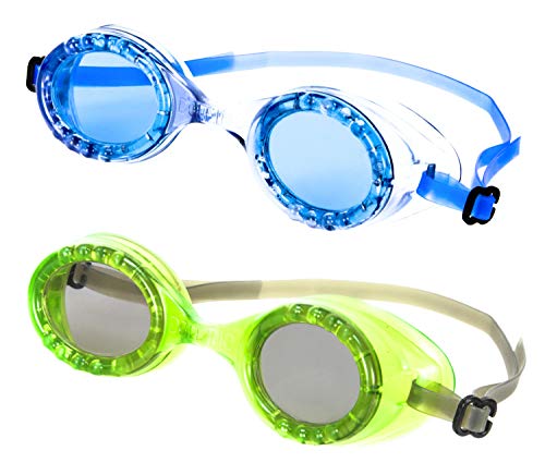 Dolfino Child Swim Goggles 2 Pack Impact Resistant, Blue & Green