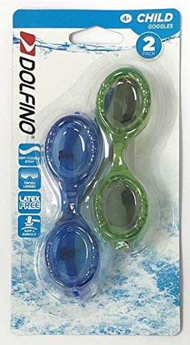 DOLFINO Child 2 Pack Swim Goggles Blue/Green Swimming Pool Kids Water Play Glasses Training WLM8 14587