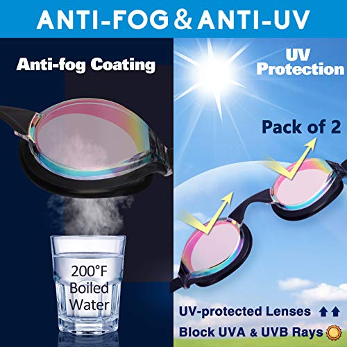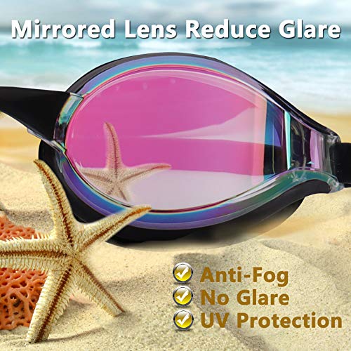 Anti-fog&UV Protected: These mirrored goggles are decent for training and competitive purpose. The anti-fog coating on the lenses resist fogging and provide crystal clear underwater vision. UV protection lenses protect your eyes from the sun’s harmful UVA and UVB rays, reduce glare and visual distortion when swimming.