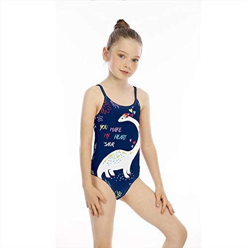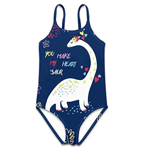 Girls Swimsuit Hand Drawn Dinosaur for Tshirt Swimwear Toddlers Kids One Piece Swimming Costume Bathing Suit for Age 5…
