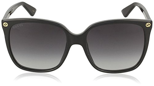 Gucci Sunglasses. Color code: 001. Size: 57. Shape: Cat Eye. Lens Width: 57 mm. Lens Bridge: 18 mm. Arm Length: 140 mm. 100% UV protection. Non-Polarized. Frame Material: Acetate. Frame Color: Black. Lenses Type: Grey Gradient. UPC/EAN code: 889652048123. Gucci Grey Gradient Cat Eye Sunglasses.