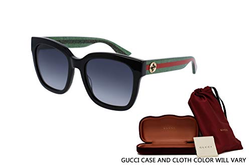 Big rectangular feminine shape, charactirezed by GG and Web, Gucci most appreciate and iconic signatures. Style enriched by glitter color treatment on temple and on some frontals, to further enhance the trendy DNA of the brand. Iconic web effect on temple as essential iconic signature. Wide color palette in line with the seasonal trends.