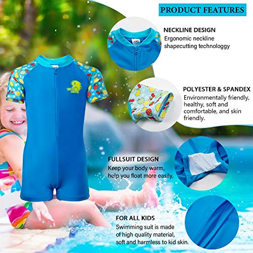 【One piece Design】High-protection short sleeve one piece with a practical zipper at the positive,so our baby swimsuit boy was easy to put on and take off, even when wet.