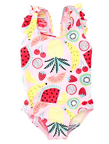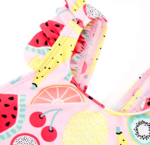 Unique & Adorable — Our cute swimsuit features elastic shoulder straps, overlaid with fruits print, tiered frill decoration across the front chest. 4 different model available