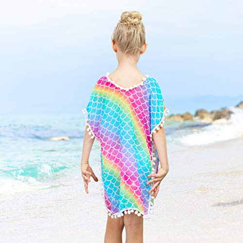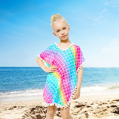 Swim Cover Up for Girls Unicorn Mermaid Cover-up Beach Swimsuit Chiffon Coverup with Pompom Tassel