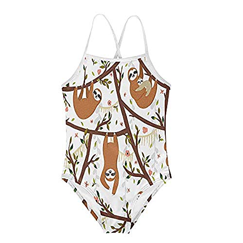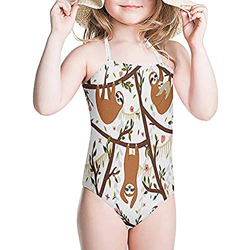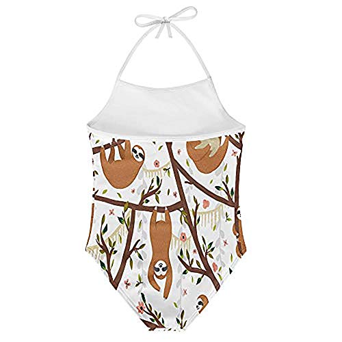 [★STYLISH AND CUTE DESIGN:]Bright colorful bathing suit for girls, cute baby sloth flowers branch pattern one piece swimwear or hawaiian beachwear for girls, enjoy the summer, enjoy the beach!Halter neck for adjustability,backless