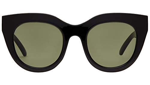 A favourite of Meghan Markle and Olivia Palermo, the OVERSIZED Air Heart silhouette is an iconic Le Specs style. With proportions reminiscent of a cat eye, the style is designed in thick black and luxurious metal top bar inlay, then fitted with premium zero base khaki flat lenses. The perfect sunglass to suit all face shapes. This product comes in our Le Specs spring close protective pouch along with a Navy microfiber cleaning cloth with debossed Le Specs logo. UV PROTECTION: CATEGORY 3.