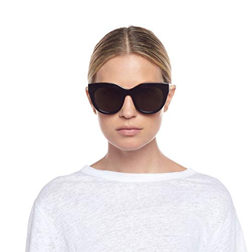A favourite of Meghan Markle and Olivia Palermo, the OVERSIZED Air Heart silhouette is an iconic Le Specs style. With proportions reminiscent of a cat eye, the style is designed in thick black and luxurious metal top bar inlay, then fitted with premium zero base khaki flat lenses. The perfect sunglass to suit all face shapes. This product comes in our Le Specs spring close protective pouch along with a Navy microfiber cleaning cloth with debossed Le Specs logo. UV PROTECTION: CATEGORY 3