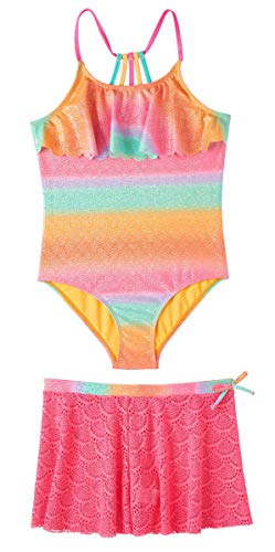 Limited Too girls printed one piece swimsuit with adorable cover up skirt, both fully lined for comfort.
