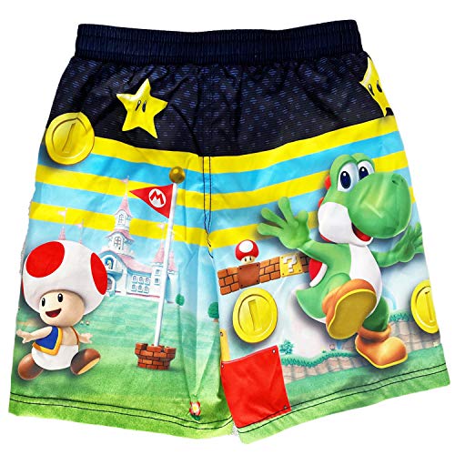 Little boys will love these Mario swim shorts. Trunks have an elastic waist and an inner drawstring. They are lined in mesh. Officially licensed product. Graphics feature Luigi, mushroom, yoshi, and many game graphics. Allover print on front and back.