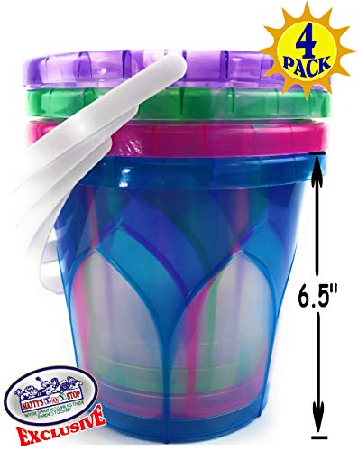 Matty’s Toy Stop Beach Gear 6.5″ Opaque Plastic Sand Buckets (Pails) Blue, Pink, Green & Purple Party Set Bundle – 4 Pack