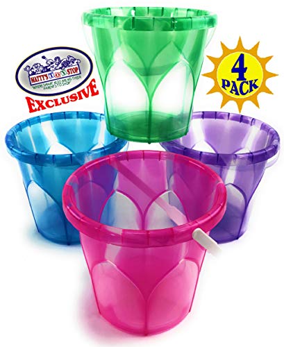 Matty’s Toy Stop Beach Gear 6.5″ Opaque Plastic Sand Buckets (Pails) Blue, Pink, Green & Purple Party Set Bundle – 4 Pack, is AWESOME! Party Bundle Includes 4 High Quality 6.5″ Opaque Beach Pails!!! Each bucket measures 6.5″ tall and has an 6.5″ diameter opening, along with a cool design and opaque plastic. Makes a great gift & is perfect for schools, party favors, beach, pools, baskets, special needs, sand box and so much more! For Ages 2 and up – Fun for the whole family! – Made of high quality plastic and is great for the beach or the sand box!