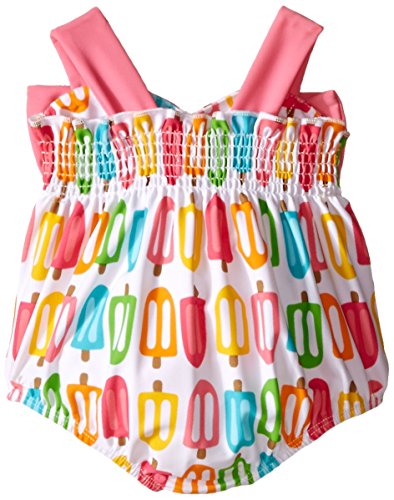 Nylon spandex bathing suit features all-over popsicle print and oversized bow accent.