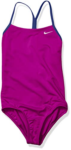 NIKE Swim girls’ Racer back one piece is designed for a great fit and speed in the water. Its racer-back design encourages free, natural motion of her arms and shoulders. An enhanced ergonomic fit with Flat-seam construction to reduce chafing, ensures comfortable and reliable coverage.