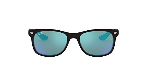 RJ9052SF new Wayfarer kids Asian Fit sunglasses: These Ray-Ban kids sunglasses are a scaled down version of the adult new Wayfarer sunglasses and feature a slightly smaller black square frame with blue mirror lenses. Asian, or alternative fit, sunglasses are designed for faces with higher cheek bones and wider nose bridges