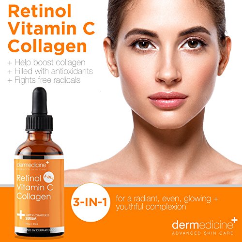 3 in 1 SUPER FORMULA TO BRIGHTEN & LIGHTEN: Our topical facial serum contains a blend of clinically proven ingredients to fight the signs of aging. Retinol, Vitamin C & Collagen work to help promote cell improvement helping to reduce appearance of hyper pigmentation, discolorations, age & liver dark spots, sun spots, pigment associated with hormones, birth control pills & daily sun exposure, tanning, sunburn, adult hormonal breakouts pregnancy. This potent blend leaves skin silky smooth & soft.