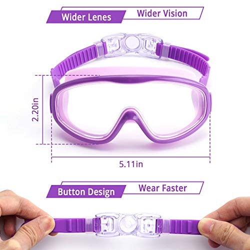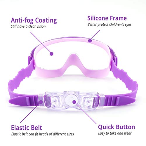 WIDER VISION – Our swim goggles are designed with wider lenses so that your kids will have 180-degree peripheral vision; Wider Flexible silicone frame provide extreme comfort and create a perfect seal around your eyes, ensuring no water in