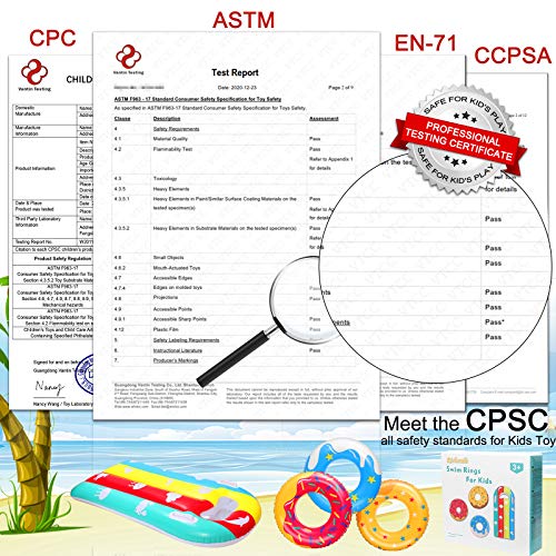 💦【Cute and safe Swimming Rings for Kids】Safety on the inflatable pool float ring is the priority when we design this product. Our inflatable pool tubes have passed the strict test of certified labs. Three kid floats and a colorful raft have achieved ASTM, CPSIA, CPC and EN71. Our ambition is let your kids enjoy the fun summer pool in safe.