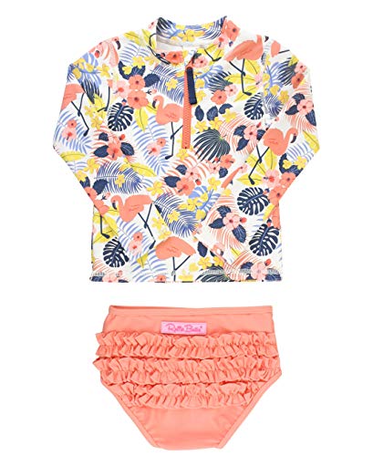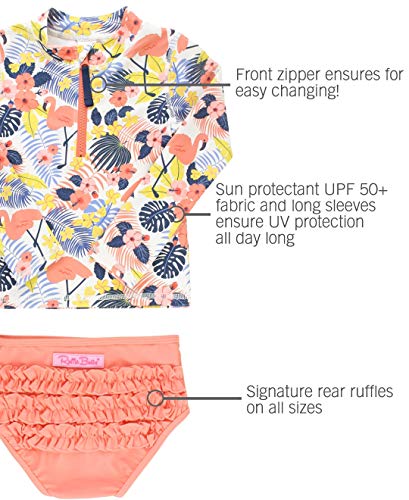 RuffleButts® Baby/Toddler Girls Long Sleeve Rash Guard 2 Piece Swimsuit Set w/UPF 50+ Sun Protection with Zipper