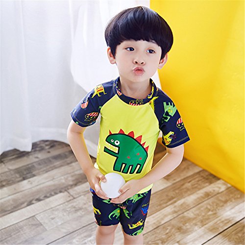SERAIALDA Baby Kids Boys Two Pieces Short Sleeve Swimwear Dinosaur Print Rash Guard Sun Protection Swimsuit Set with…