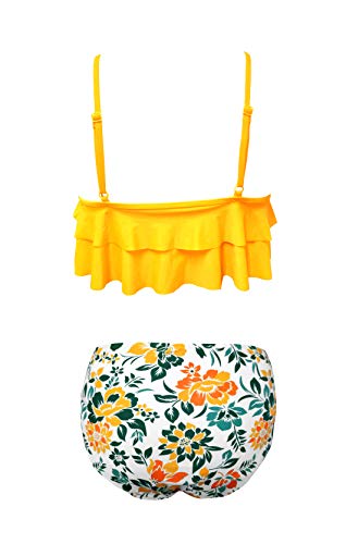 Solid color bikini top is design with a two-layer ruffle overlay,made it more adorable.