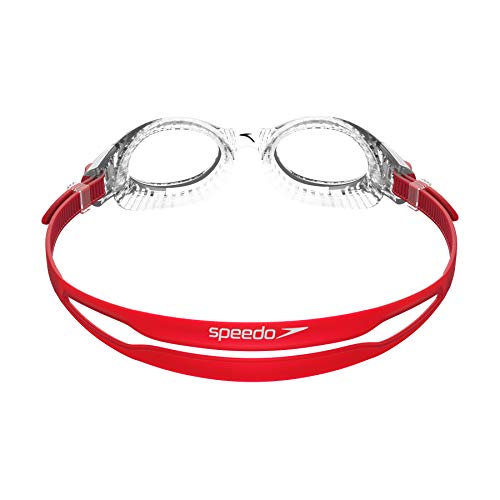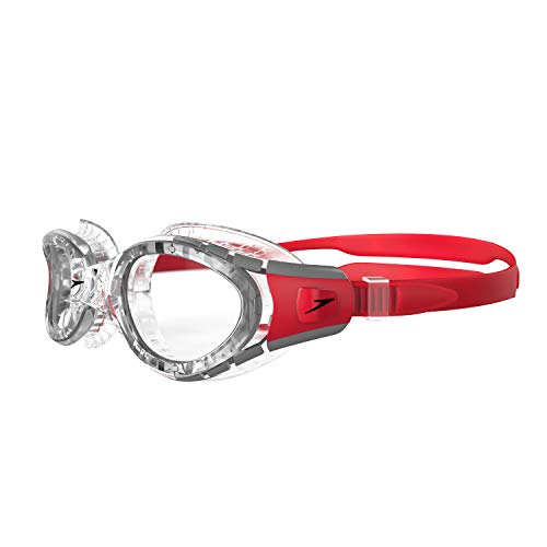 The NEW Futura Biofuse Flexiseal goggles offer the ultimate in goggle comfort. The new super soft flexible seal offers greater flexibility for an even softer and more cushioned fit around the eye. Designed using super soft, gel-like materials and featuring Speedo Biofuse technology, this goggle makes your comfort top priority. NEW Super soft flexible seals offer greater flexibility for an even softer and more cushioned fit. Features: Featuring Speedo Biofuse technology for cushioned comfort every time you swim Flexible frame adapts to the contours of your face for an individual fit Strong internal frame is wrapped in a soft gel-like skin, ensuring stability on your face Wide Vision lenses for enhanced peripheral vision Clear lenses for low light conditions and maximum visibility Ideal for indoor swimming Anti fog coated lens with 100% UV Protection Goggle pouch included