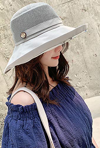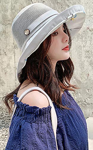 Summer Mesh Sun Hats for Women Lightweight Beach Hat Floral UPF50+ Packable Wide Brim Bucket Hat with Chin Strap