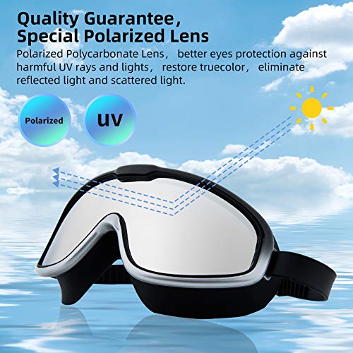 【Clearer view & UV protection】The surface of this swimming goggles is treated with double-layer special mirror coating and polycarbonate lenses to effectively filter harmful light. This adult swim goggles colored reflective surface of the lenses can effectively protect your eyes from UV rays