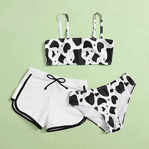 Tankini Swimsuits for Girls Cow Print Bikini 3 Piece Swimsuit Bandeau Top with Boyshorts Briefs Bathing Suit 8-14 Years