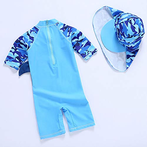 Baby Boys One Piece Bathing Suit Toddlers Zipper Swimsuit Swimwear with Hat Rash Guard Surfing Suit UPF 50+