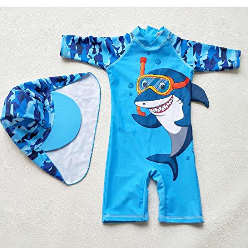 Cute: Diving Shark Printed,Baby rash guard swimwear with cool shark pattern for a flattering look,Soft, Quick-drying, 4-way stretch.Great gift for little one!
