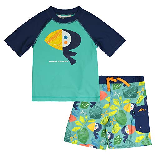These swim trunks and coordinating UV protecting swim shirt rash guard from Tommy Bahama are sure to make a splash.