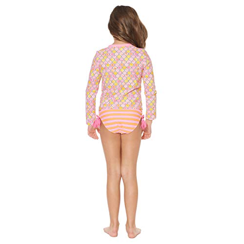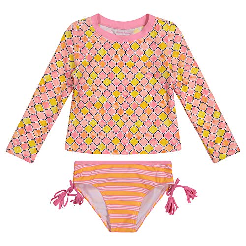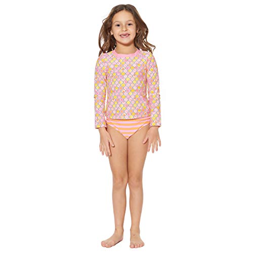 This bathing suit set features a rash guard as the top – providing uv protection in and out of the water.