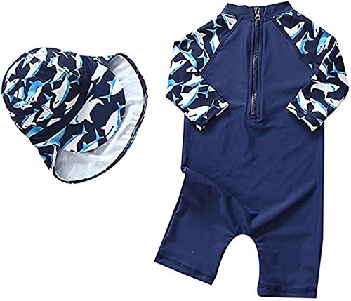 Baby Toddler Boys One Piece Swimsuit Set Swimwear Shark Bathing Suit Rash Guards Sunsuit with Hat UPF 50+