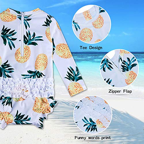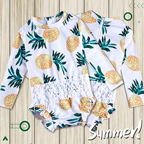 ❤BEST ADORABLE DESIGN – baby girl one piece ruffle swimsuit: zipper closure at the neck/back,durable while still feeling soft and comfortable.Features the sweetest details for sun safety. One-piece design and long sleeves offer full coverage and comfort along with greater flexibility while your baby girl grows. And our ruffles are on every pair of bottoms.