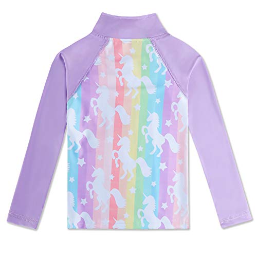 ✿Quick Change Zipper Design: Little Girls Rashguard Swimsuit with Convenient Zipper at The Neck Makes Getting Suit On / Off a No-More-Tears Experience, Exposed Quarter Zip with Chin Guard No Harm to Baby Skin.