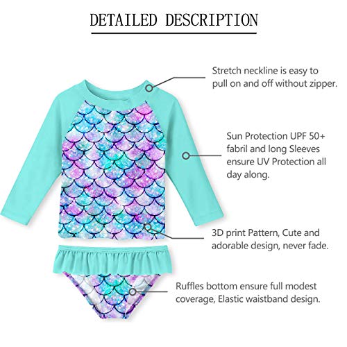 OCCASION: This long sleeve roashguard swim shirt with Tikini bottom perfect for beach, pool party, play dates, weekends, resort trips, cruises, backyard luaus, and family vacations