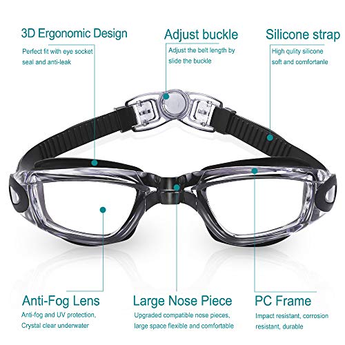 Comfortable Wearing Experience – Durable swim goggle set and comfy helps you focus under the water. High grade silicone gasket, TPR nose piece and adjustable strap were featured for unisex adult with different face, head size and hair length.